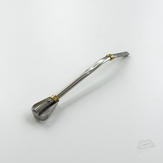 Bombillon torneado con detalle de hoja en alpaca, detalles en bronce y cobre. Excelente e...
