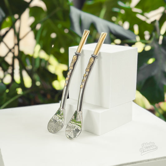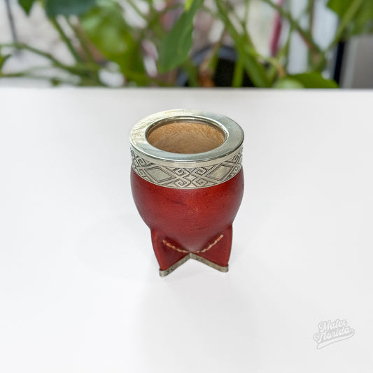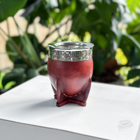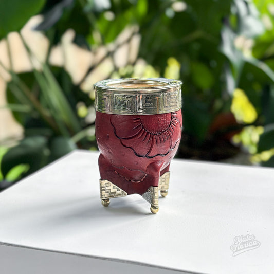 Mates artesanales hechos a mano con materiales como la calabaza, cuero, alpaca y bronce. Cada mate es único, ya que ninguna calabaza es idéntica a otra, el cuero al ser genuino su textura tiene un look excepcional.