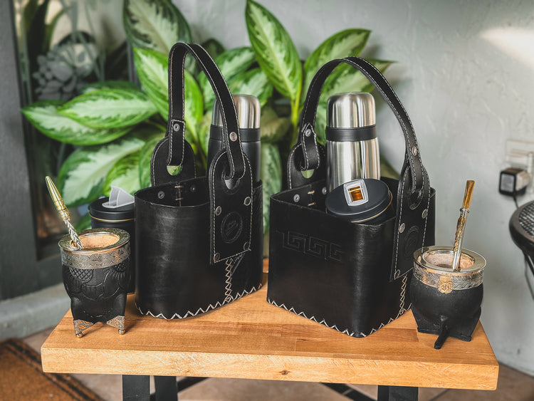 Mates artesanales hechos a mano con materiales como la calabaza, cuero, alpaca y bronce. Cada mate es único, ya que ninguna calabaza es idéntica a otra, el cuero al ser genuino su textura tiene un look excepcional.
