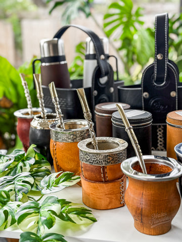 - Handcrafted Mates : Handcrafted mates made from different materials such as pumpkin, carob and stainless steel. Covered in genuine Argentine leather.