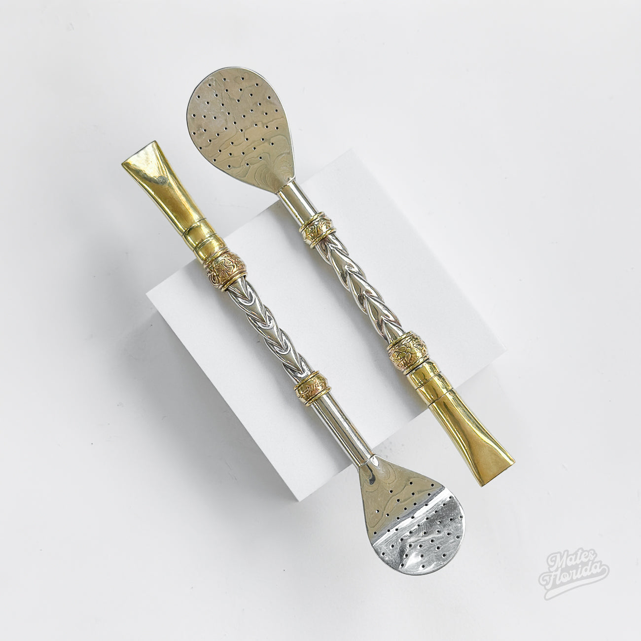 Bombillon de Alpaca y bronce. Torneado a mano. Altamente detallados y elegantes. Hechos en Argentina por manos de artesanos.