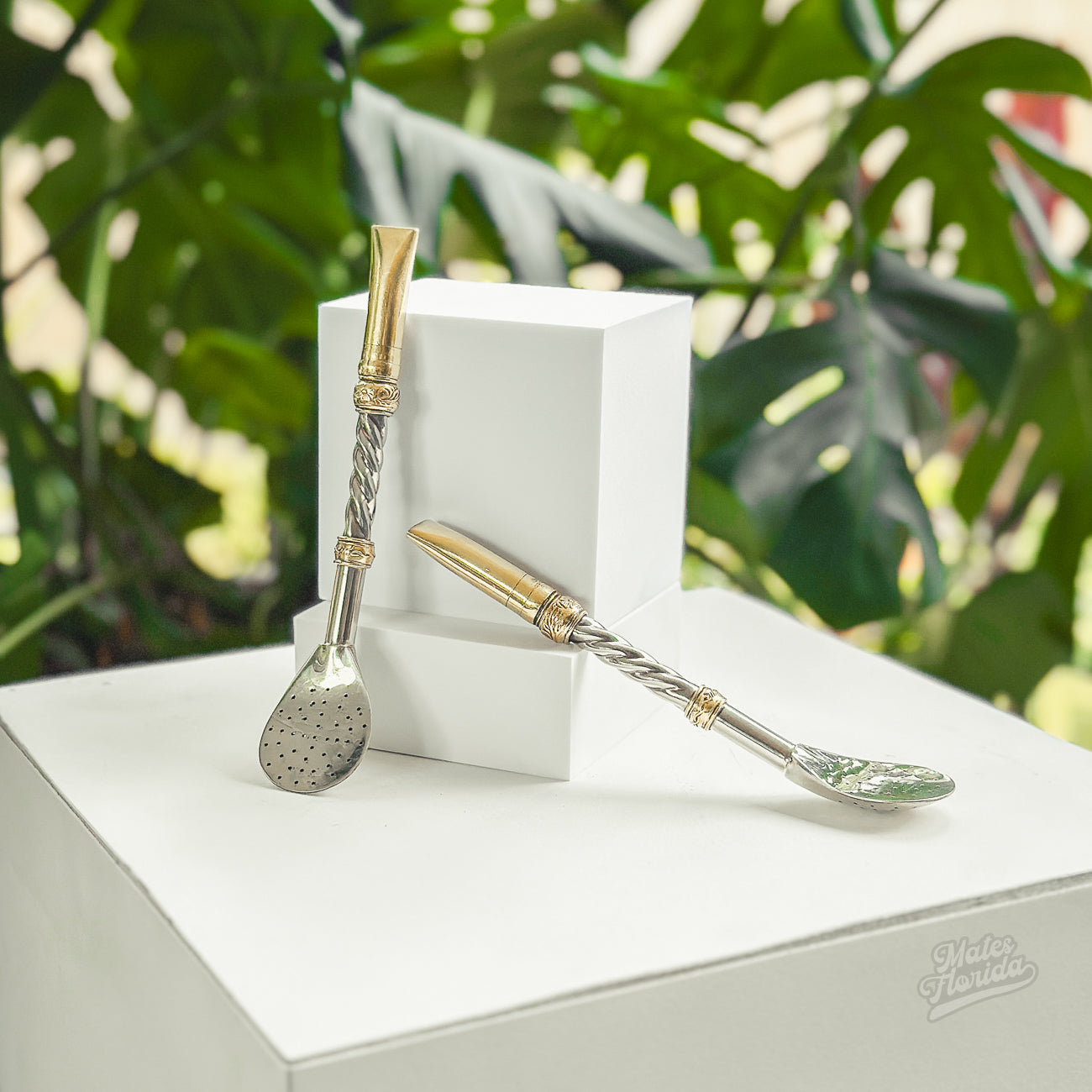 Bombillon de Alpaca y bronce. Torneado a mano. Altamente detallados y elegantes. Hechos en Argentina por manos de artesanos.