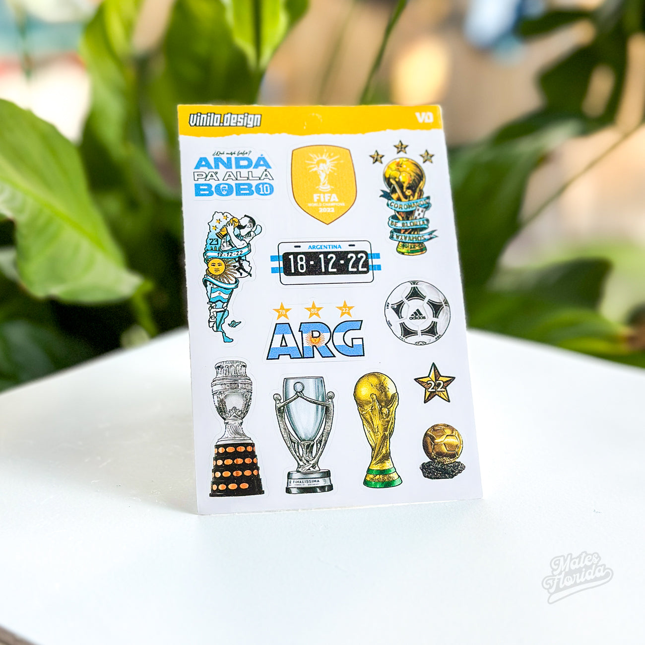 Las calcomanías están fabricados en vinilo de alta calidad con doble laminado UV. Esto hace que sean aptos para exteriores, resistentes al agua y no se decoloren con el paso del tiempo y la exposición.