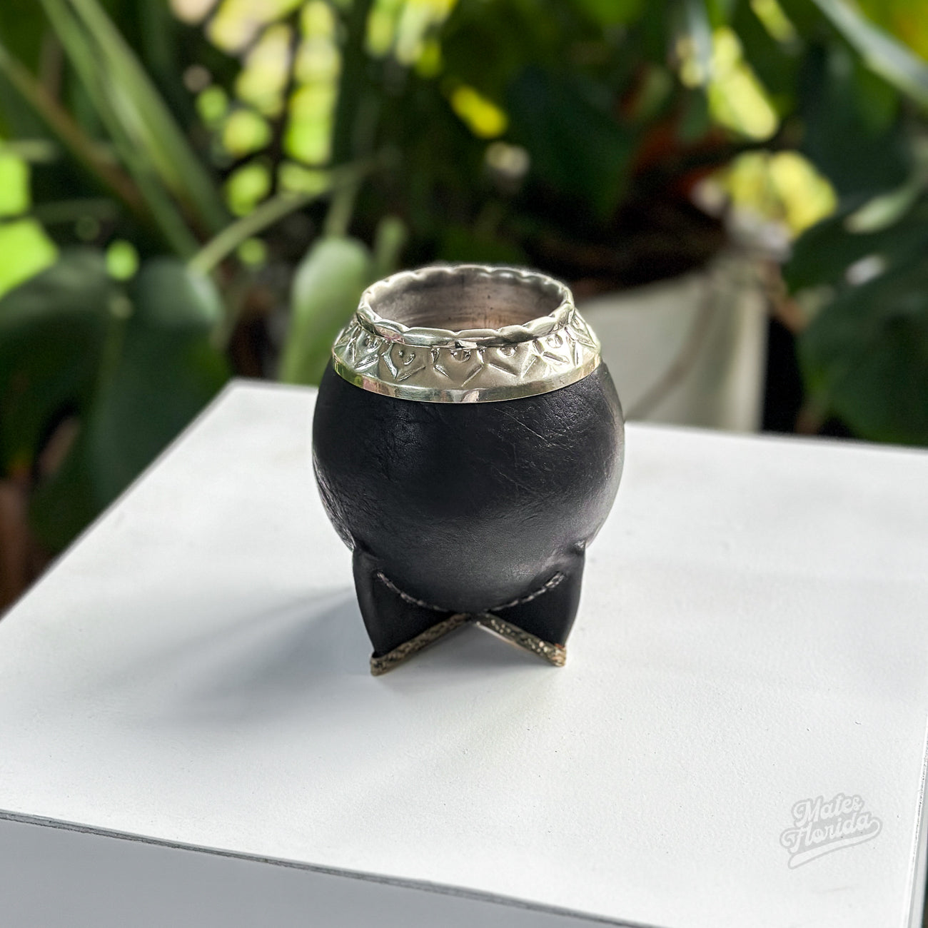 Mate modelo torpedo. Forrado en cuero genuino. Base de alpaca. Hecho a mano en Argentina.